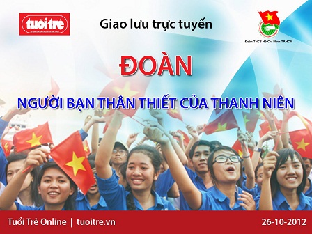 Vào lúc 9g ngày 26-10, Thành đoàn TP.HCM phối hợp cùng báo Tuổi Trẻ Online tổ chức buổi giao lưu trực tuyến với chủ đề “Đoàn - người bạn thân thiết của thanh niên” trên Tuổi trẻ Online (tuoitre.vn).