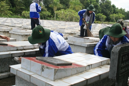 Kỷ niệm 65 năm ngày Thương binh liệt sĩ (27/7/1947 – 27/72012), Đoàn cơ quan Thành Đoàn (cụm sự nghiệp) tổ chức ngày hội “Giây phút tri ân”, thăm hỏi gia đình chính sách, làm vệ sinh các mộ phần liệt sĩ tại nghĩa trang liệt sĩ huyện Củ Chi (xã An Nhơn Tây, huyện Củ Chi).